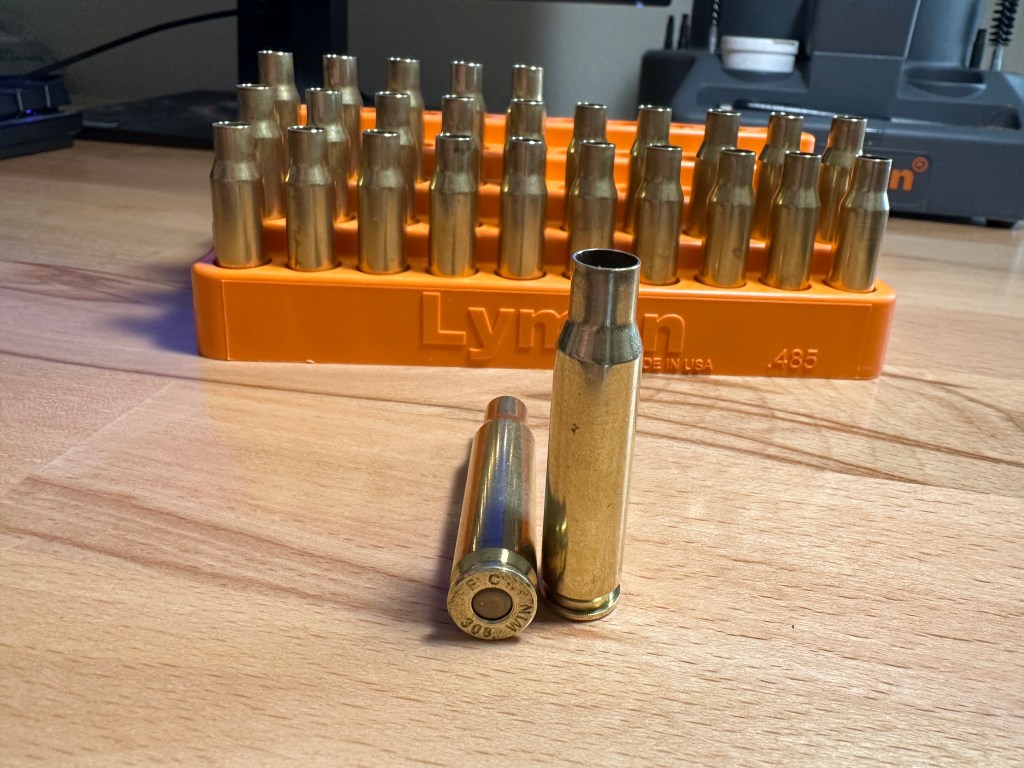 For brass, I am going to start out by using once-fired brass that I picked up from my local range. I sorted through my cleaned .308 brass stock and set aside 27 pieces of Federal brass to use in my initial development. I plan on using this Federal once-fired brass to do the initial load development, but once I begin the process of fine tuning the load I will switch to new Starline brass. I will be using Starline brass for the final rounds that will be going into the woods with me.